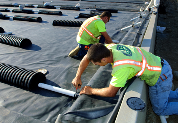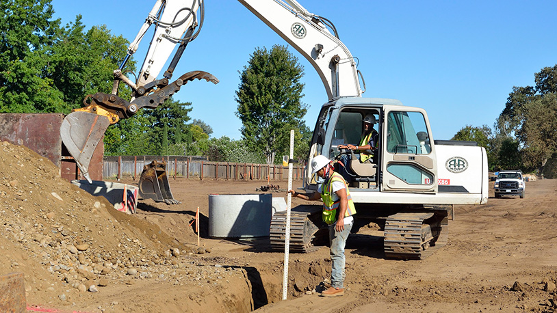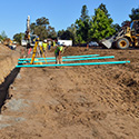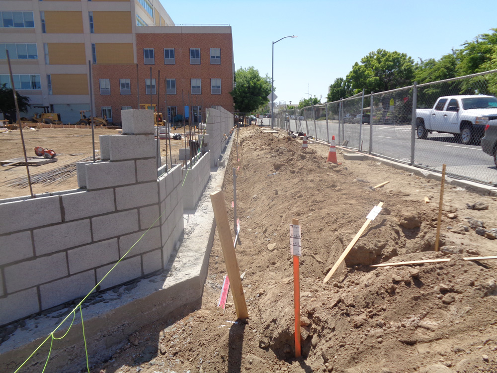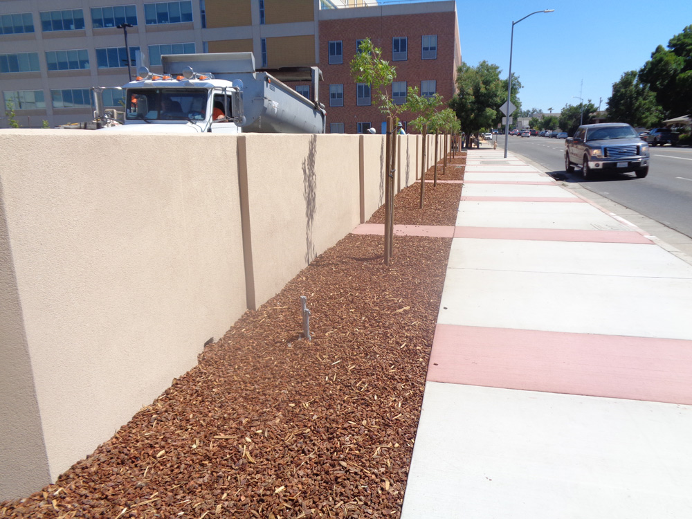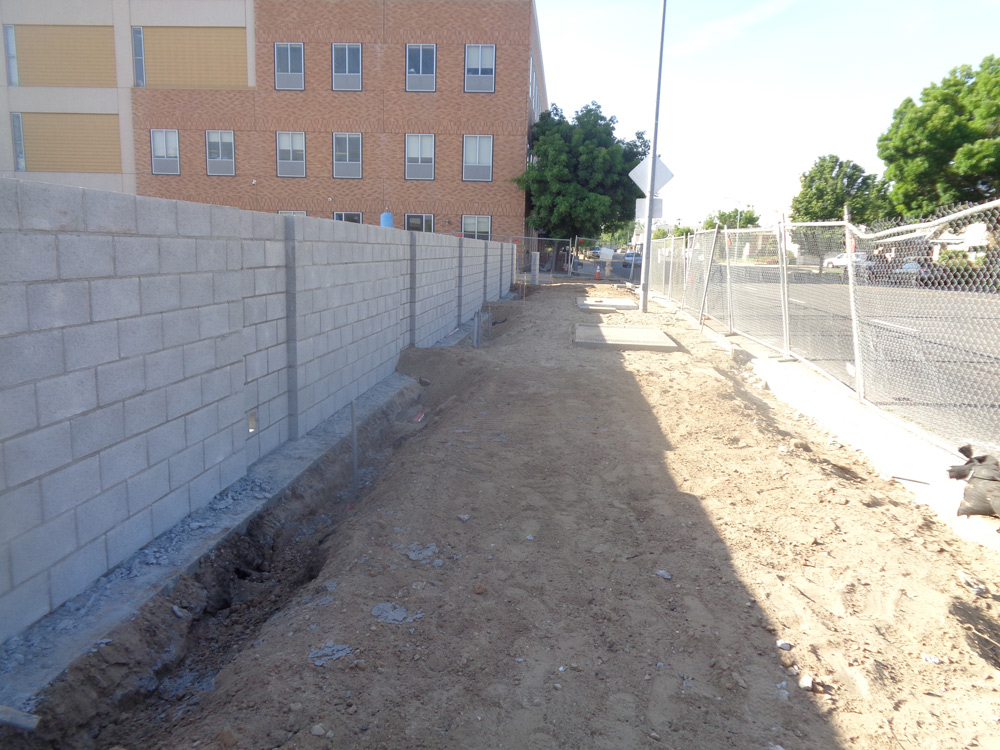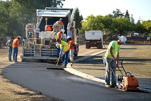 The construction of a new parking lot for Caltrans Headquarters in Marysville included grading, paving, underground utilities, landscaping, and a CMU wall.