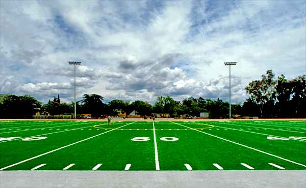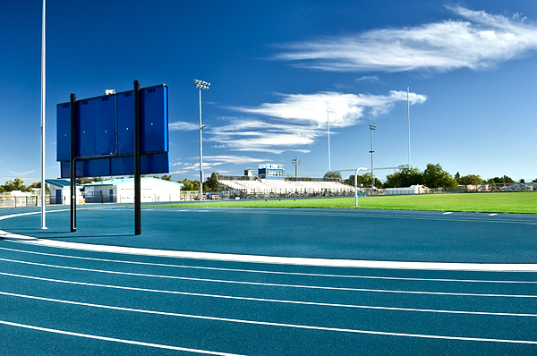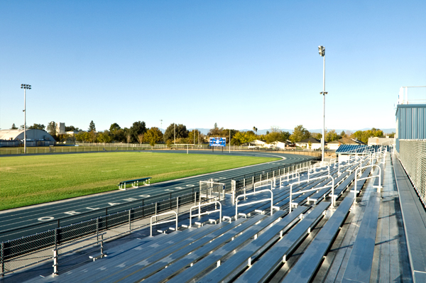 New football field: field, goal posts, scoreboard, bleachers, announcer's booth,